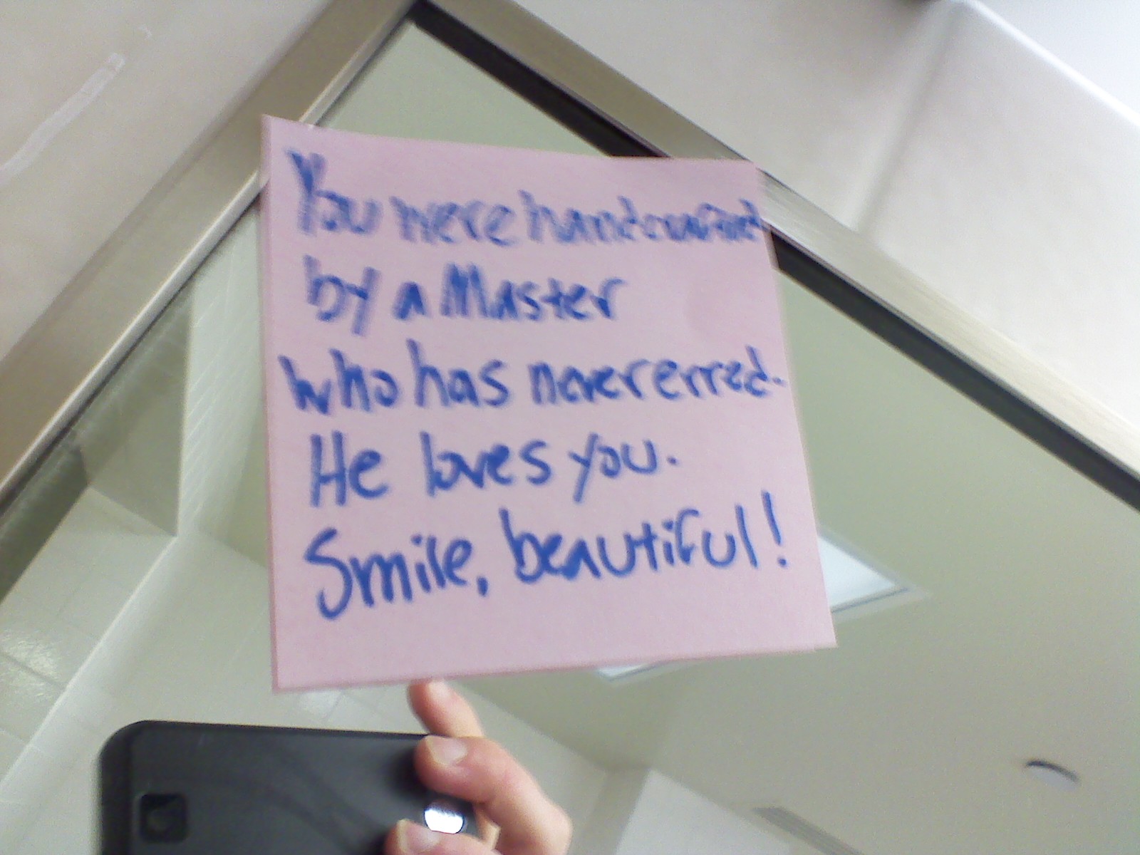 | "you were handcrafted by a Master who has never erred. He loves you. Smile, beautiful!" |